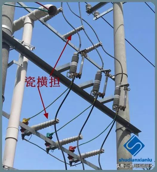 用于安裝避雷器的橫擔(dān)。本圖中還安裝瓷橫擔(dān)。